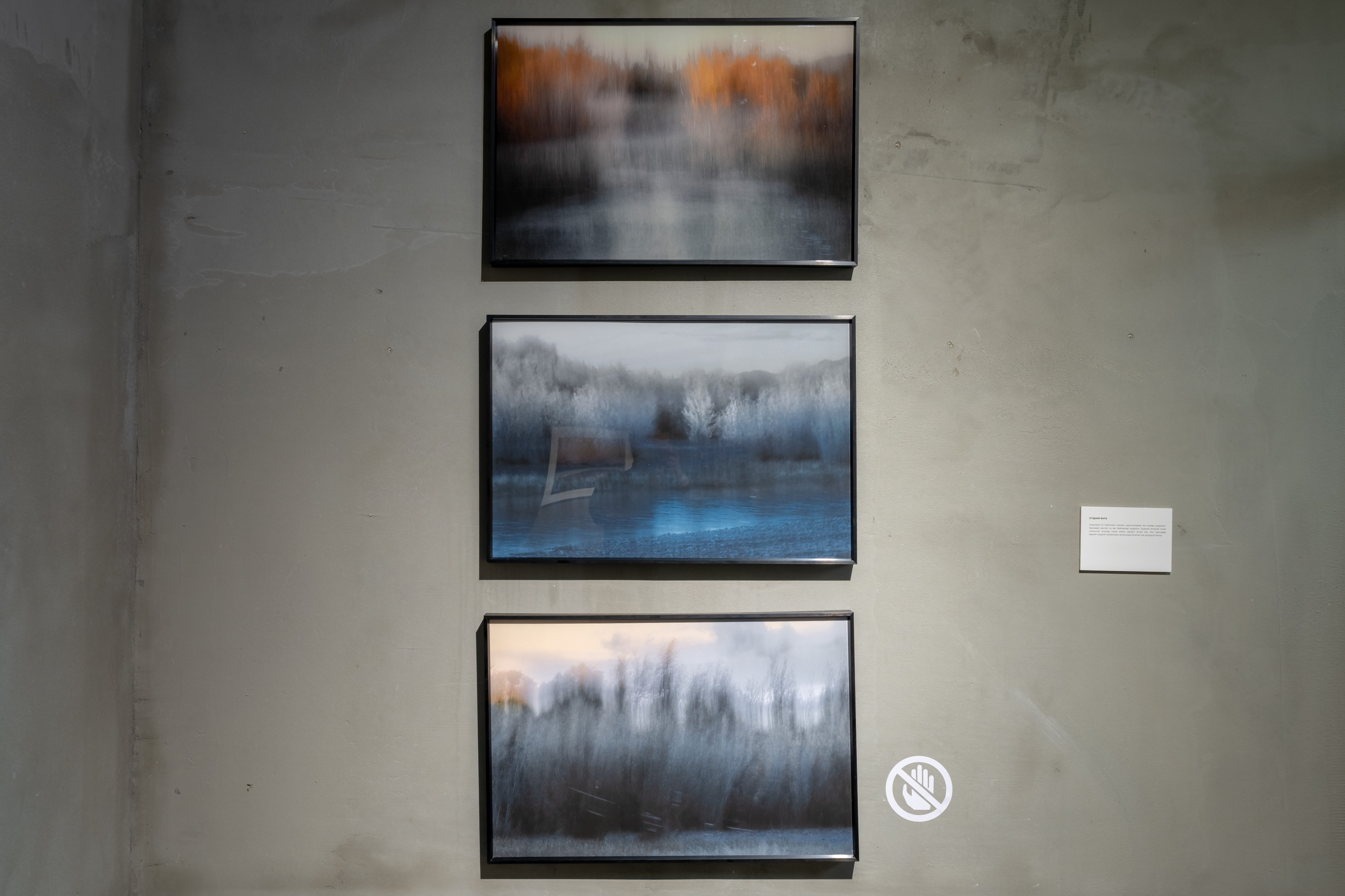 Хүмүүсийн тэр бүр анзаараагүй өнгөрдөг навчис ширчигнэх, салхи исгэрэх чимээ намайг анагааж, газардуулж, байгаль дэлхийгээ сонсох, сэтгэл рүүгээ өнгийх, бясалгахад гүнээ тусалдаг. Энд дэлгэгдсэн зургууд тэдгээр амар амгалангийн мөчүүдийн нийлбэр тул үзэгчид ч аниргүй нам гүмийг мэдэрч, өөрийгөө толинд тусгаж харж байгаа мэт сэтгэлээ эргэн ажихыг хүсэж байна.